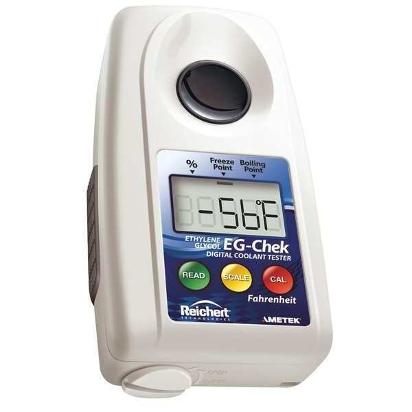 Refractometer, Hand-Held, Range 0 Percent to 95 Percent, Automatic Temperature Compensation Yes, Accuracy +/-0.2 Percent EG, +/-1.0 Degrees F, Resolution 0.002, Function Measures Ethylene Glycol (EG) Freeze Point, Ethylene Glycol (EG) Boiling Point, Ethylene Glycol (EG) Percent Concentration, Length 3 29/32 in, Width 2 7/64 in, Height 1.1094 in, Includes (2) AAA Batteries, Holster Case, Manufacturers Warranty Length 1 yr