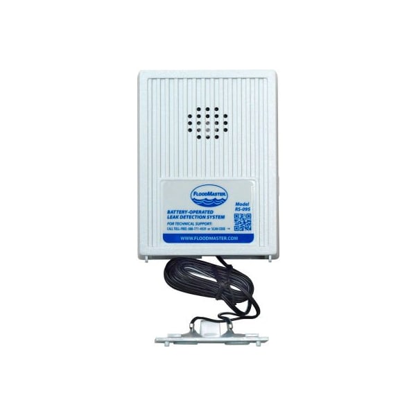 Floodmaster's rs-095 simple water alarm system is designed to sound an audible alarm when the sensor comes in contact with just 1/32" of any non-flammable conductive liquid (such as water). The rs-095 model is a battery-powered unit (9-volt battery not included) that is self contained and can be placed where a potential leak or overflow may occur. This fully transportable sensor can be repositioned as your need for an early leak detection alarm changes. The sensor has a 6-foot wire so it can be extended into a sump pit, or mounted on a wall and stretched to another location. features: loud (110 db) alarm sounds with only 1/32" of water detected at the sensor easy installation up to 100 ft. Of speaker wire can be spliced into the line to extend the reach of the sensor one sensor per unit