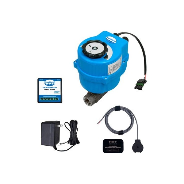 The floodmaster rs-080 series of total water main shut-off and alarm products are designed for localized leak detection (one room, one floor, etc.). When a leak is detected, the unit will automatically shut off the water main supply line. Specific model selection is based on the valve size required to interface to the designated water main pipe. while other floodmaster leak detection products are intended for localized appliance control, the rs-080 series is designed for the complete shutoff of water to the entire building or facility plumbing section. When the sensor comes in contact with water, the system will automatically shut down the water feed line and sound an audible alarm, thus avoiding extensive water damage. Floodmaster units are easy to install and require no electrical wiring. An optional connection (24-volt signal) to a home security panel, control room or appropriate relay is also standard on all units. floodmaster recommends that installations be completed by a licensed plumber to ensure that all local code requirements are followed. features: rigid and reliable automatic valves multiple sensors can be added to a single alarm system multiple valve sizes available audible alarm easy installation - no electrical wiring required easy reset valves meet nsf372 potable water standard unit can interface with a home security alarm system, control room or appropriate relay