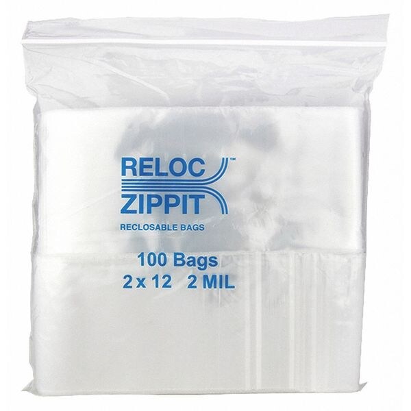 Reclosable Bag, 12 L, 2 in W, 2 mil Thick, Polypropylene, Clear