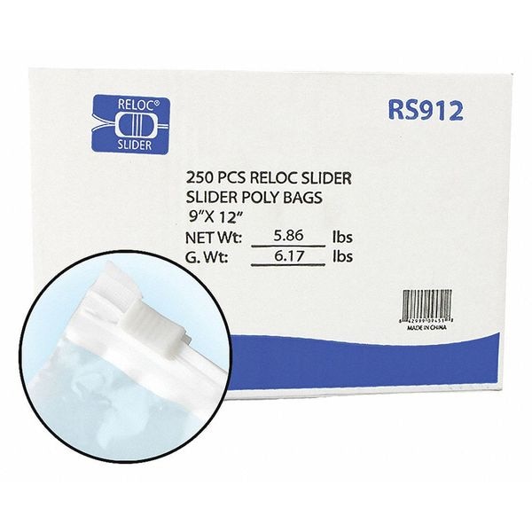 Reclosable Bag, Polyethylene, Thickness 2 mil, Width 9 in, With Hang Hole Hang Hole Not Included, Clear, Package Configuration Box, Seal Length 9 in, Package Quantity 250