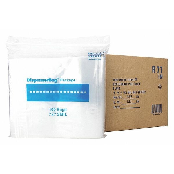 Reclosable Bag, Polypropylene, Thickness 2 mil, Width 7 in, With Hang Hole Hang Hole Not Included, Clear, Package Configuration Box, Seal Length 7 in, Package Quantity 1000