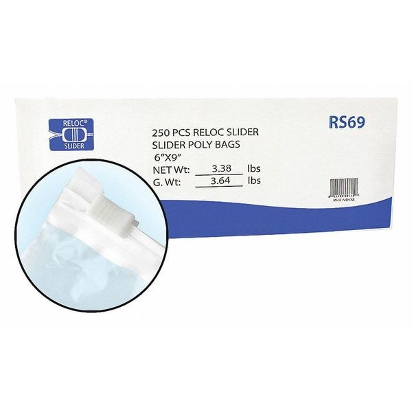 Reclosable Bag, Polyethylene, Thickness 2 mil, Width 6 in, With Hang Hole Hang Hole Not Included, Clear, Package Configuration Box, Seal Length 6 in, Package Quantity 250