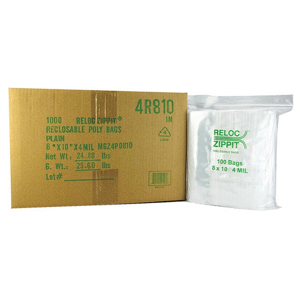 Bag Features White Block, Reclosable Bag, Bag Closure Type Zip Seal, Polyethylene, Thickness 4 mil, Width 8 in, Length 10 in, With Hang Hole Hang Hole Not Included, FDA Compliant FDA Compliant, Bag Bottom Type Folded, Clear, Package Configuration Flat Pack, Seal Length 0 in, Seal Width 0 in, Usable Length 10 in, Usable Width 8 in, Package Quantity 1000