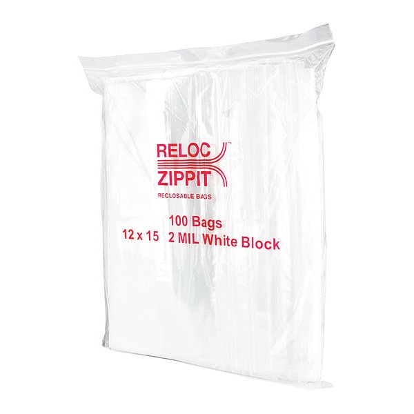 Bag Features White Block, Reclosable Bag, Bag Closure Type Zip Seal, Polyethylene, Thickness 2 mil, Width 12 in, Length 15 in, With Hang Hole Hang Hole Not Included, FDA Compliant FDA Compliant, Bag Bottom Type Folded, Clear, Package Configuration Flat Pack, Seal Length 0 in, Seal Width 0 in, Usable Length 15 in, Usable Width 12 in, Package Quantity 1000