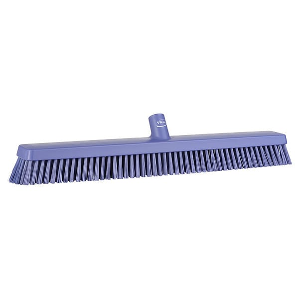 Heavy-Duty Broom Head, Tool Type Broom Head, Handle Connection Type Threaded, For Surface Texture Multi-Surface, Sweep Face 24 in, Bristle Length 2 3/8 in, Bristle Material Polyester, Bristle Color Purple, Block Material Polypropylene, Bristle Firmness Soft/Stiff Combination, Connection Thread Type European, Chemical Resistant Yes, Features Flared Bristles Reach Into Corners and Wall Junctions, More Densely Packed Bristles to Sweep Fine and Larger Debris, Block Depth 3 1/8 in