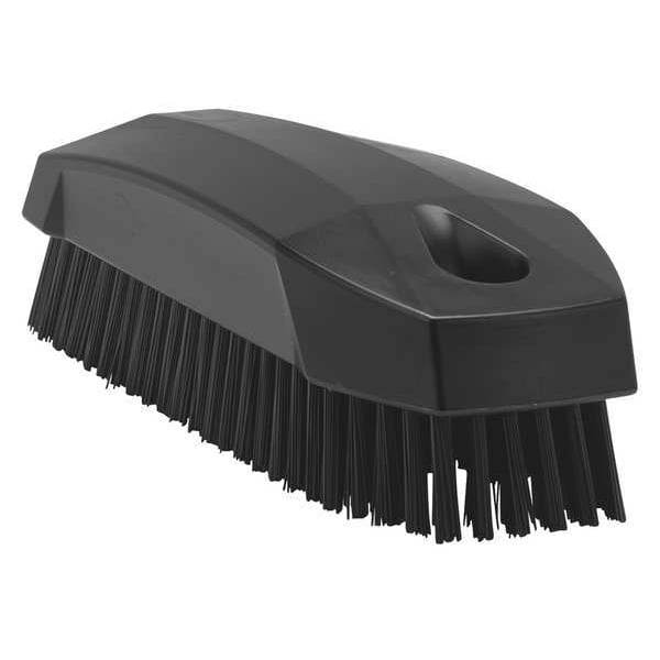 Hand and Nail Brush, Bristle Firmness Stiff, Bristle Material Polyester, Handle Material Plastic, Brush Length 4 1/2 in, Handle Length 4 7/8 in, Head Width 1 7/8 in, Bristle Color Black, Overall Length 4 7/8 in, Chemical Resistant Yes, Bristle Length 5/8 in, Brush Type Hand Scrub Brush, Nail Brush, Features Hanging Hole, Handle Color Black, Surface Type Wet, Head Shape Angled, Temperature Resistant Yes, FDA Compliant Yes, Acid Resistant Yes, Color Coding System Yes