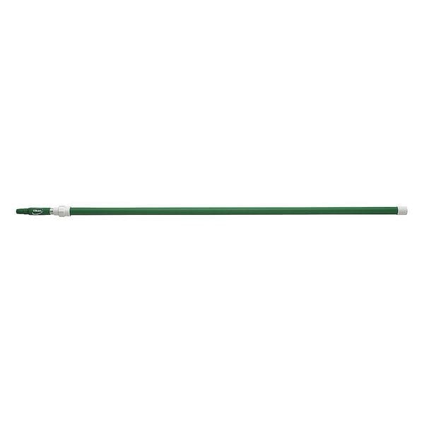 Telescopic Handle, Connection Type Threaded, Material Anodized Aluminum/Polypropylene, Minimum Telescoping Length 62 in, Maximum Telescoping Length 109 in, Connection Thread Type European, Handle Diameter 1 1/4 in, Grip Material Polypropylene, Grip Style Ergonomic, Color Green, Color Coding System Yes, Pole Diameter 1 1/4 in, Product Type Telescopic Handle, Series Vikan, Standards FDA Compliant, Halal and Kosher Compliant, REACH Regulation (EC) 1907/2006