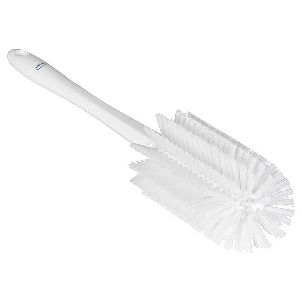 Bottle Brush, Bristle Firmness Medium, Handle Style Straight, Bristle Material Polybutylene Terephthalate, Handle Material Polypropylene, Brush Length 6 1/2 in, Handle Length 10 1/4 in, Head Width 3 1/8 in, Bristle Color White, Overall Length 16 7/8 in, Chemical Resistant Yes, Bristle Length 1 1/4 in, Brush Type Bottle Brush, Features Dishwasher and Autoclave Safe, Ergonomic Design, Handle Color White, Minimum Temperature -4 Degrees F, Surface Type Wet, Antimicrobial Yes, FDA Compliant Yes