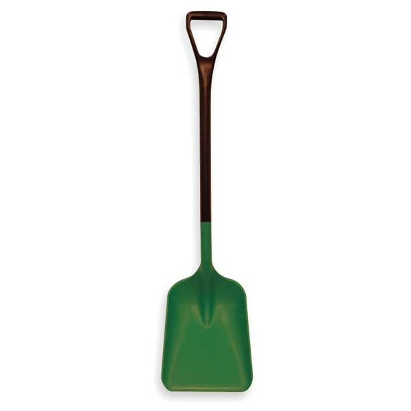 Industrial Shovel, Product Type Scoop Shovel, Blade Type Square Point, Blade Material Plastic, Number of Ribs 1, Blade Length 14 in, Blade Size #3, Blade Width 10 3/8 in, Blade Color Green, Handle Type D-Grip, Handle Material Polypropylene, Handle Length 30 in, Handle Color Black, Blade Step Not Applicable, Corrosion Resistant Yes, Detachable Handle Yes, ESD Safe No, Non-Sparking No, Overall Length 43 11/16 in