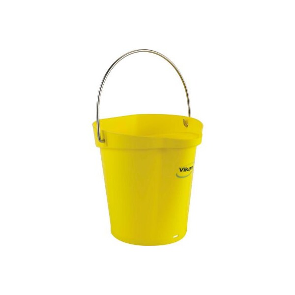 Vikan 56886 1.5 gallon bucket, yellow this is a durable 1.5 gallon bucket that is suitable for cleaning or storage of ingredients and food stuff and is calibrated for a variety of measuring units. The bucket has a wide drip-free spout, sturdy stainless steel hanger, hand grip at the bottom that is raised