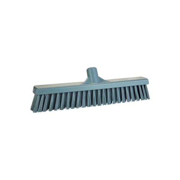 Vikan 317488 16 combo push broom- soft/stiff, gray this sweeping broom has two types of bristles, stiff in the front and soft at the back. The stiff bristles loosen stubborn debris, and the soft bristles sweep away fine particles. Combining the best of both stiff and soft-bristled brooms, the combo push broom can handle almost any job. The total-color broom makes conforming to color-coding haccp plans easy.
