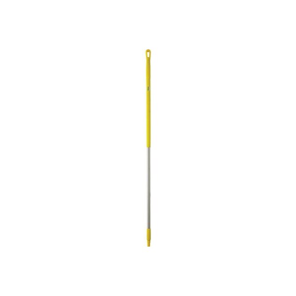 Vikan 29376 59 aluminum handle, yellow vikan's standard aluminum broom handle is an important part of color-coding programs and can be used with all brooms, squeegees, and scrapers. The handle with the attached item should reach to the chin of the user to prevent occupational back injuries.