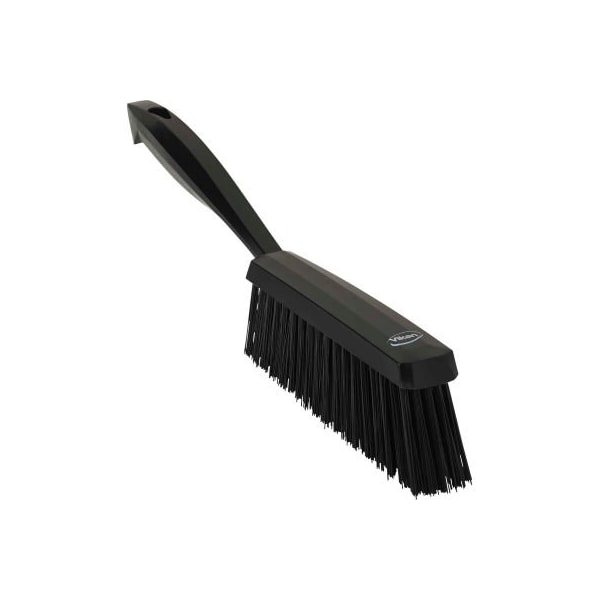 Vikan 45899 bench brush- medium, black this is a dusting brush with a smooth, ergonomically designed handle. The medium strength bristles remove moist or medium sized particles, such as sugar, chocolate, pastry, vegetable peelings. It is also used as a dustpan brush on floors.