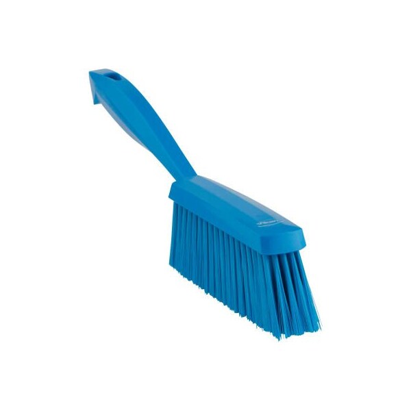 Vikan 45873 bench brush- soft, blue this is a dusting brush with a smooth, ergonomically designed handle. The soft bristles are designed for brushing dry, fine particles, such as dust, flour, icing sugar. It is also used as a dustpan brush on floors.