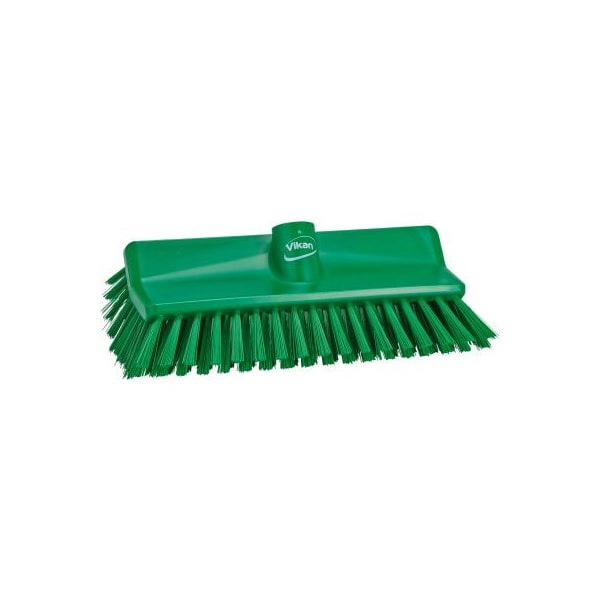 Vikan 70472 high-low brush- medium, green the angled shape of this scrubbing broom was designed to clean the area where the wall meets the floor, but also effective for cleaning the floor itself. Its bristles are gentle enough to be used on equipment. It is a popular choice in meat processing facilities, canneries, mills, wineries and breweriesand generally any moist environment that creates difficult cleaning challenges.