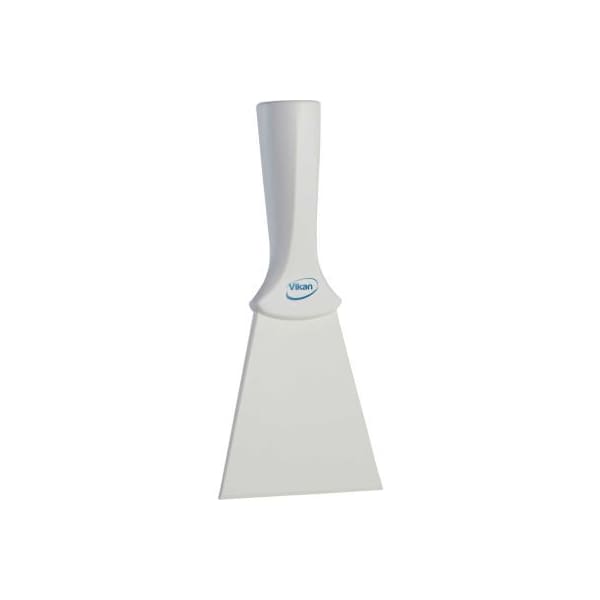 Vikan 40125 nylon scraper with threaded handle, white suitable for loosening stubborn dirt like pastry, chocolate, burnt on food, etc. On smooth surfaces. The nylon blade is a good alternative to a stainless steel blade and can be used on sensitive surfaces to avoid scratches on equipment and sensitive conveyor belts. The hard blade can withstand hot surfaces when used at intervals of max. 2 minutes at a time. Can be used with any vikan handle.