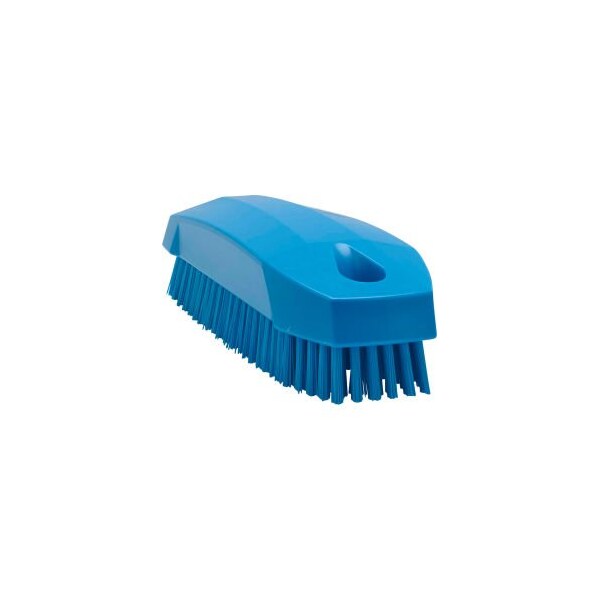 Vikan 64403 small hand brush- stiff, blue the large size of this nail brush facilitates quick and effective nail cleaning. The bristles are stiff enough to be effective but fine enough to reach under the nail area without causing damage to the skin. The hole in the base allows you to affix to the wash area with a stainless steel cable connected to the wall or sink.