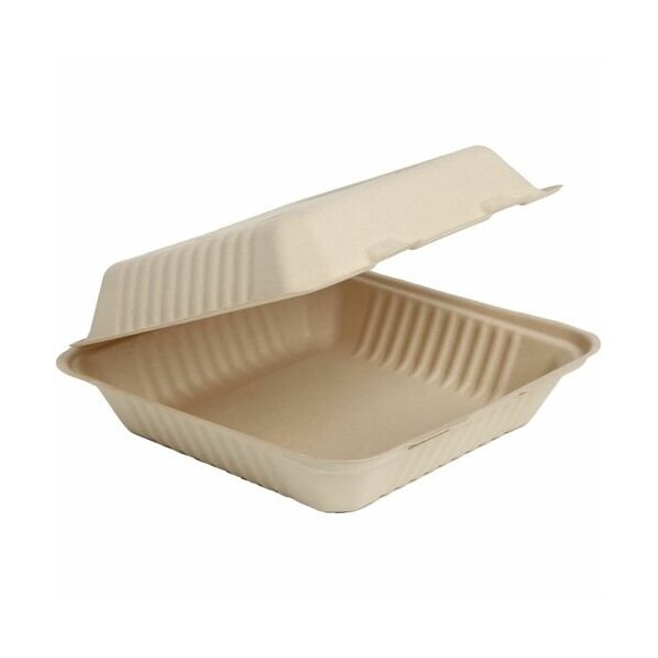 CONTAINER, HINGED, 9INCH, 1C, FIBER, NAT,