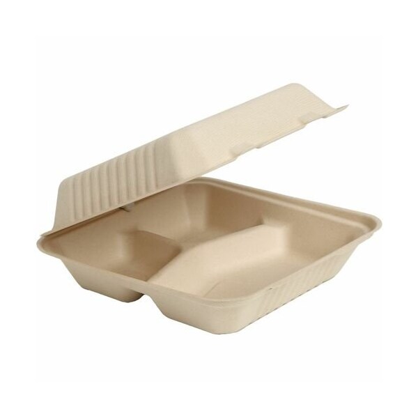 CONTAINER, HINGED, 9INCH, 3C, FIBER, NAT,