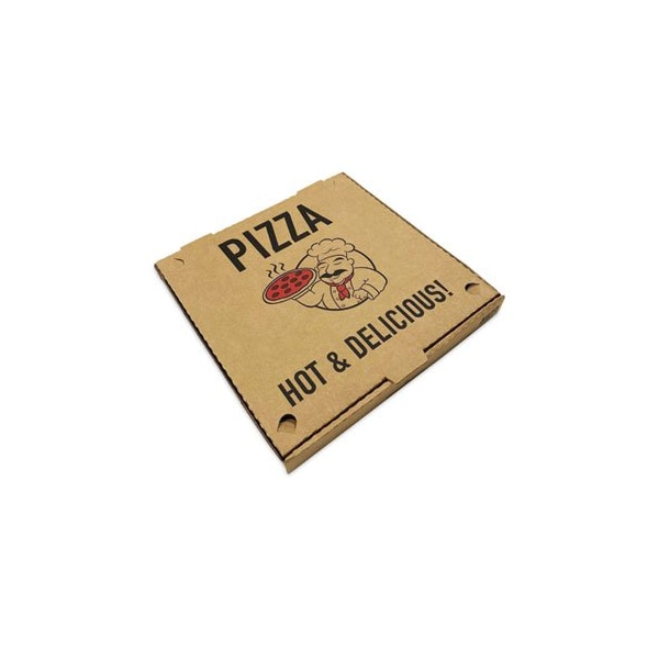 All-Kraft pizza boxes that keep pizza hot and ready for customer pick-up, delivery or take out. Boxes are B-Flute with four top vents. Pizza boxes are branded with a stock inHot & Deliciousin graphic to align with that traditional pizzeria feeling. Food Container Type: Box; Materials: Kraft Cardboard; Food Container Material Type: Paper; Colors: Kraft.