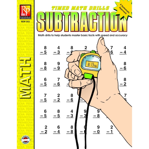 Success in all areas of mathematics starts with a solid knowledge of the basic facts. This book provides concentrated practice of basic subtraction facts to help students reach mastery level. Timed Math Drills: Subtraction provides step-by-step practice in subtraction that starts with whole-page calculations using the same, single subtrahend (0 thru 9), progresses to calculations using two different subtrahends, and then to all-inclusive, mixed subtrahends. The goal is to achieve mastery at the highest possible accuracy level in the lowest possible time. A chart is included on which each student's progress can be recorded. Award forms are included to validate students' achievements.