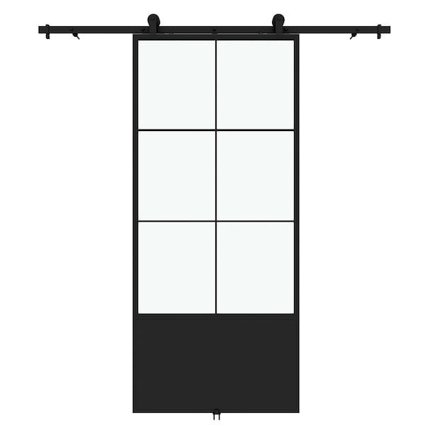 Broadway Clear Glass Metal Barn Door with Installation Hardware Kit 37 in.