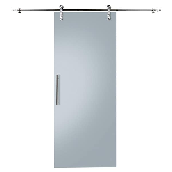 Glacier Frosted Glass Barn Door with Installation Hardware Kit 37 in.
