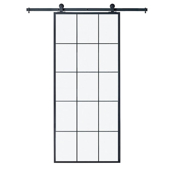 Queen's Clear Glass Metal Barn Door with Installation Hardware Kit 37 in.