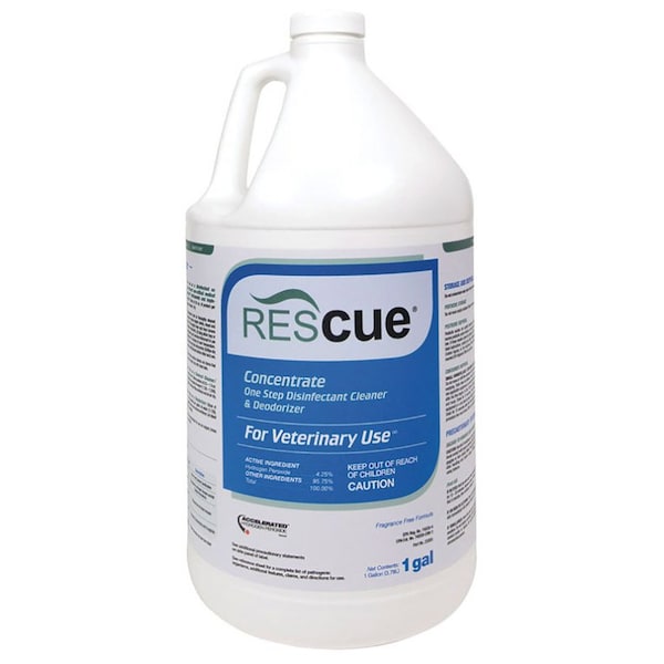 Rescue is a one-step disinfectant cleaner and deodorizer formulated with AHP Accelerated Hydrogen Peroxide for veterinary use. When used as directed, this product is highly effective against a wide variety of pathogenic microorganisms including bacteria, antibiotic resistant bacteria, viruses, fungi, mold and mildew including: Canine Parvovirus Canine Distemper Virus Enterococcus Microsporum Canis Streptococcus Trichophyton Ringworm