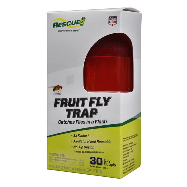 RESCUE! Fruit Fly Trap quickly breaks the breeding cycle and can be reused again and again. By studying fruit flies in our insect lab we determined the exact shade of red that will attract fruit flies. Combined with our own bait formula our trap catches fruit flies faster than competing traps.