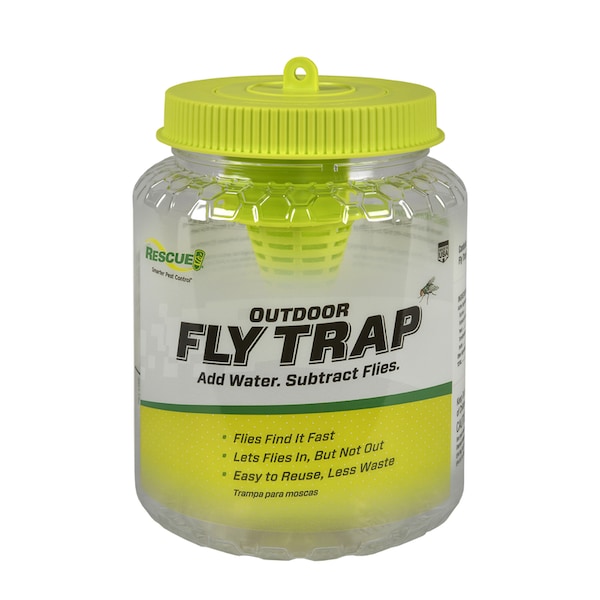RESCUE! Reusable Fly Trap is a simple, economical way to keep flies at bay. Designed to control fly populations at the source, these traps use a food-based lure that flies find irresistible. The trap comes with a water-soluble pouch of powder attractant. When the jar is filled with warm water and the trap is placed outdoors, the attractant dissolves and activates quickly. Simply replace the used attractant with a refill packet to allow this trap to be reused again and again.