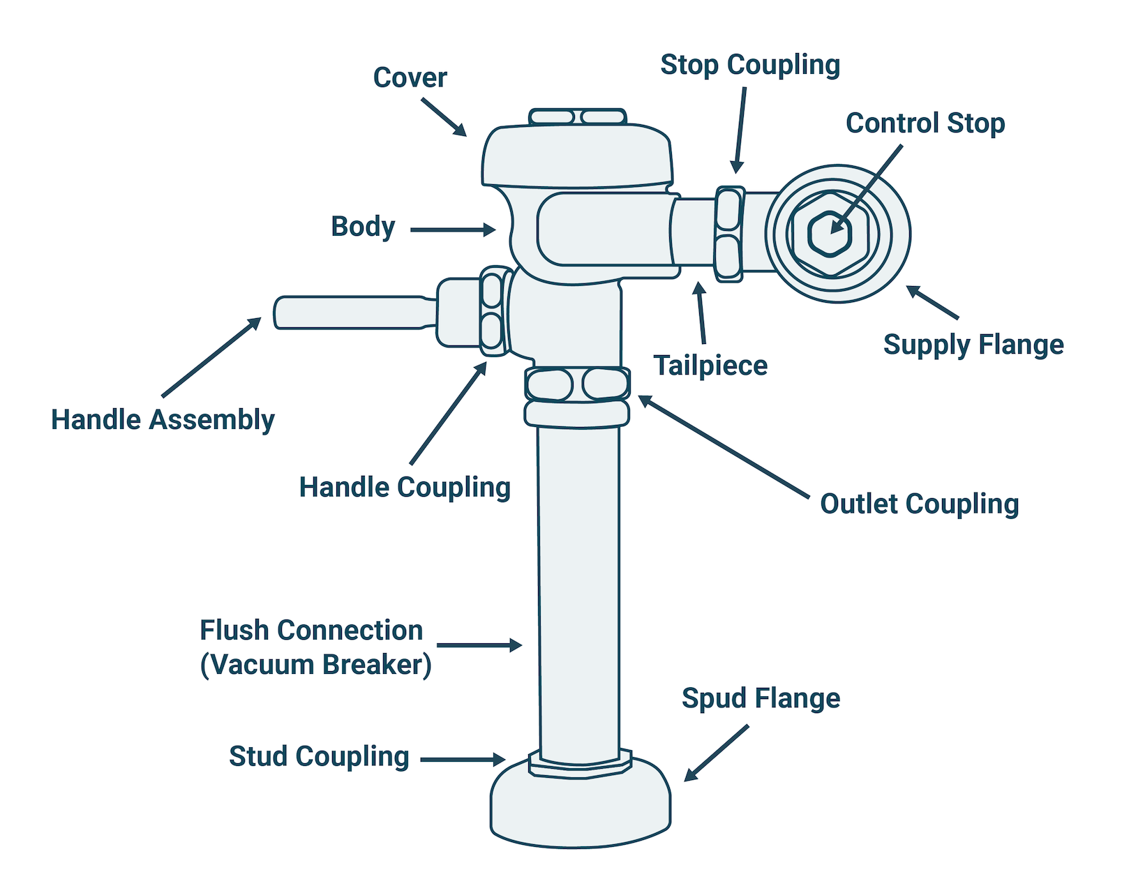 Manual flush valves are frequently found in the busy bathrooms of airports, offices, schools, restaurants, and many other commercial buildings. Installing a new valve assembly or replacing an old one is easier when you understand the various components. This article is designed to provide you with an understanding of commercial flush valve parts and their basic functions.