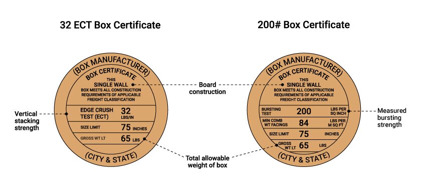 One of the most common terms on a Box Maker's Certificate is “ECT,” short for Edge Crush Test. This test measures how much force the box walls can withstand when stacked vertically.