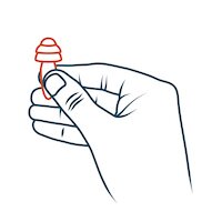 When wearing ear plugs, it's important to use them properly to get the most effective wear and benefits. To use disposable ear plugs, with clean hands, roll the ear plug between your thumb and first two fingers. Don't squeeze the ear plug, rather roll it until the diameter of the ear plug is as small as possible.