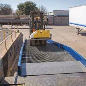 Portable ramps, also called yard ramps, are ideal for small businesses without a permanent dock. They’re easy to move and position where needed, making them a flexible solution. Just confirm the ramp’s load rating matches your forklift and cargo weight before use.