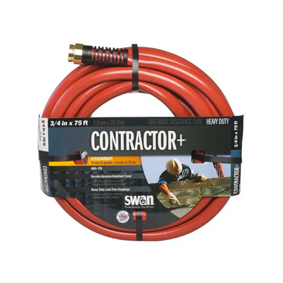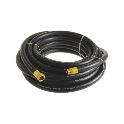 Made for cold water, this heavy-duty hose features crush-proof aluminum fittings and can handle 400 psi water pressure. |