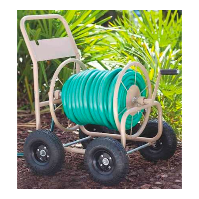 | Hand-crank hose reels keep garden hoses secure and hidden from view. The hose is pulled out when needed, then the hand crank winds it back inside. They are used anywhere a hose is needed but must be stored out of sight, such as decks and patios, nurseries, gardens, and landscaping. | Keep garden hoses mounted securely on the wall and off the ground with plastic hose reels. A hand crank winds the hose for simple storage. | Tote up to 300' of hose to your garden, landscape project, or backyard pool with this wheeled cart. A hand crank quickly rolls the hose back onto the spindle. | Like a wall-mounted garden hose reel, this is attached to a dedicated pole with a base or stake set in the ground and placed anywhere it’s needed. Since it’s on a spinner, the reel can rotate to face the user for faster unwinding and rolling of the hose. |