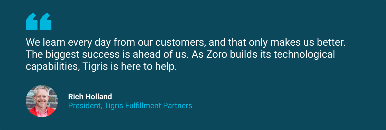 "Tigris has made investments and scaled to keep up with Zoro’s customer demand," said Rich Holland.