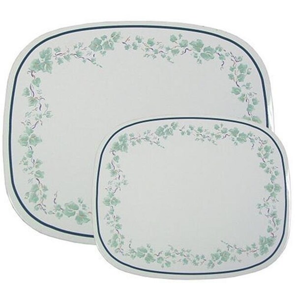 This set of two counter stove mat is decorative and durable in nature. Just place it on a cold stove top and it will increase your counter space. This will also protect your counter top from difficult to remove burns stains and scratches. The small one meaures 7.5in x 6.25in and the large is 10in x 8in.