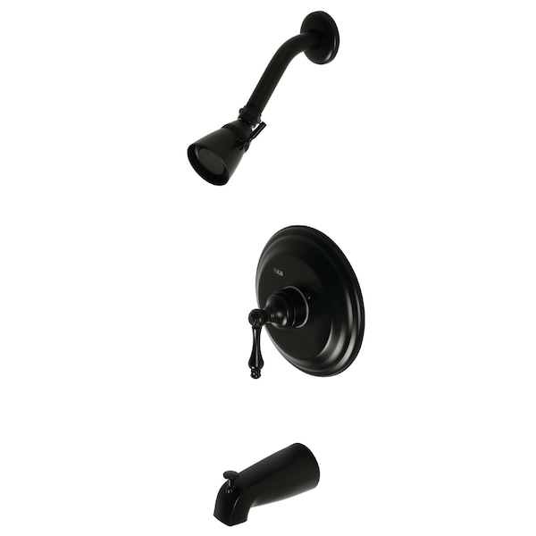 The traditional charm of this tub and shower faucet brings classical artistry to your home. Complete with an easy-to-turn lever handle, an optimum bathing experience awaits. Enjoy the sturdy brass construction and premium matte black finish for a fixture that will last for years to come. A pressure balanced valve is included for safety and protection against accidental burns.