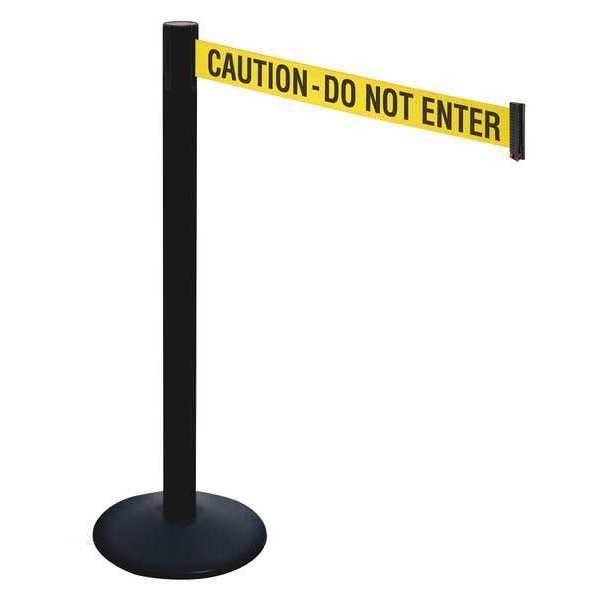 Barrier Post with Belt, Black, 10 ft Length, 40 in Post Height, Caution Do Not Enter, Powder Coated