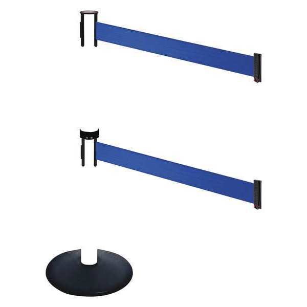Barrier Post with Belt, Maximum Overall Height 40 in, Legend No Legend, Legend Color Not Applicable, Number of Belts 2, Belt Length 10 ft, Belt Width 3 in, Belt Color Blue, Post Color White, Product Type Stanchion, Includes Hose Clamp Fixing, Wire Clip Belt End, Minimum Overall Height Not Applicable, Post Diameter 2 1/2 in, Post Material Plastic, Post Finish Powder Coated, Base Type Round Sloped, Base Diameter 14 in, Base Material Cast Iron, Base Finish Powder Coated, Base Color Black