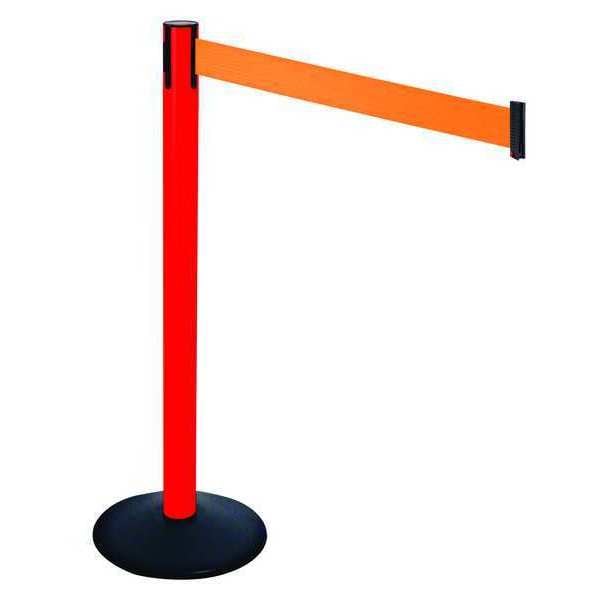 Barrier Post with Belt, Maximum Overall Height 40 in, Legend No Legend, Legend Color Not Applicable, Number of Belts 1, Belt Length 10 ft, Belt Width 3 in, Belt Color Orange, Post Color Red, Product Type Stanchion, Includes Hose Clamp Fixing, Wire Clip Belt End, Minimum Overall Height Not Applicable, Post Diameter 2 1/2 in, Post Material Plastic, Post Finish Powder Coated, Base Type Round Sloped, Base Diameter 14 in, Base Material Cast Iron, Base Finish Powder Coated, Base Color Black