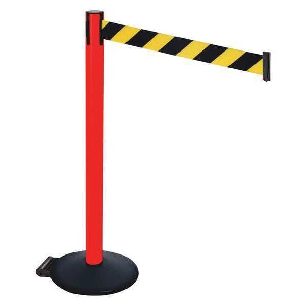 Barrier Post with Belt, Maximum Overall Height 40 in, Legend No Legend, Legend Color Not Applicable, Number of Belts 1, Belt Length 10 ft, Belt Width 3 in, Belt Color Black/Yellow, Belt Pattern Diagonal Stripe, Post Color Black, Product Type Stanchion, Includes (2) Wheels, Minimum Overall Height Not Applicable, Post Diameter 2 1/2 in, Post Material Vinyl, Post Finish Powder Coated, Base Type Round Sloped, Base Diameter 14 in, Base Material Cast Iron, Base Finish Powder Coated, Base Color Black