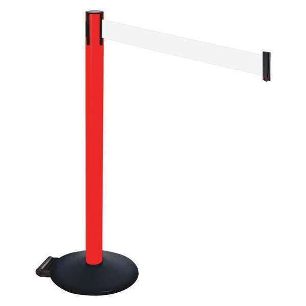 Barrier Post with Belt, Maximum Overall Height 40 in, Legend No Legend, Legend Color Not Applicable, Number of Belts 1, Belt Length 10 ft, Belt Width 3 in, Belt Color White, Post Color Black, Product Type Stanchion, Includes (2) Wheels, Minimum Overall Height Not Applicable, Post Diameter 2 1/2 in, Post Material Vinyl, Post Finish Powder Coated, Base Type Round Sloped, Base Diameter 14 in, Base Material Cast Iron, Base Finish Powder Coated, Base Color Black, ADA Compliance No
