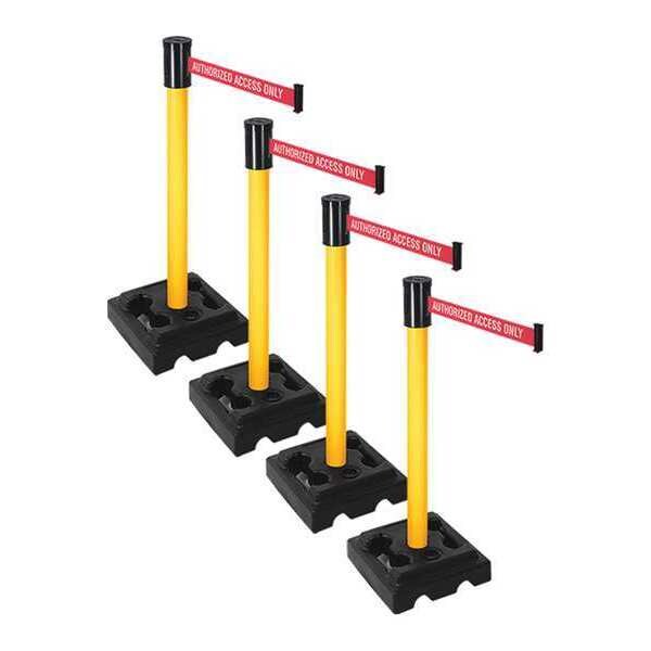 Barrier Systems, Includes Four Posts and Bases, Belt Length 15 ft, Belt Color Red with White Text, Legend Authorized Access Only, Post Color Yellow, Base Type Fillable, Square, Post Height 40 in, Post Diameter 2 1/2 in, Post Material PVC, Base Diameter 15 in, Base Color Black, Base Material HDPE, Cart Material Plastic