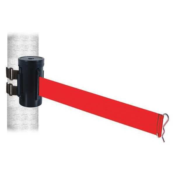 Retractable Belt Barrier, Mounting Style Hook-and-Loop Mounting Plate, Belt Length 10 ft, Belt Color Red, Legend No Legend, Legend Color Not Applicable, Frame Color Black, Overall Height 4 3/4 in, Number of Belts 1, Frame Finish Powder Coated