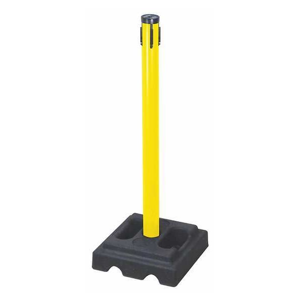 Belt Barrier Receiver Post, Base Type Square, Fillable No, Maximum Overall Height 40 in, Post Color Yellow, Post Material Aluminum, Post Diameter 2 1/2 in, Base Diameter 15 in, Minimum Overall Height 40 in, Base Color Black, Post Finish Yellow, Base Material Rubber, Base Finish Black, Indoor/Outdoor Usage Outdoor, ADA Compliance No, Height Adjustability Fixed Height, Manufacturer Warranty Length 10 yr