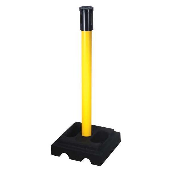 Belt Barrier Receiver Post, Base Type Square, Fillable No, Maximum Overall Height 40 in, Post Color Yellow, Post Material Aluminum, Post Diameter 2 1/2 in, Base Diameter 15 in, Includes Not Applicable, Minimum Overall Height Not Applicable, Base Color Black, Post Finish Yellow, Base Material Rubber, Base Finish Black, Indoor/Outdoor Usage Outdoor, ADA Compliance No, Height Adjustability Fixed Height, Manufacturer Warranty Length 10 yr